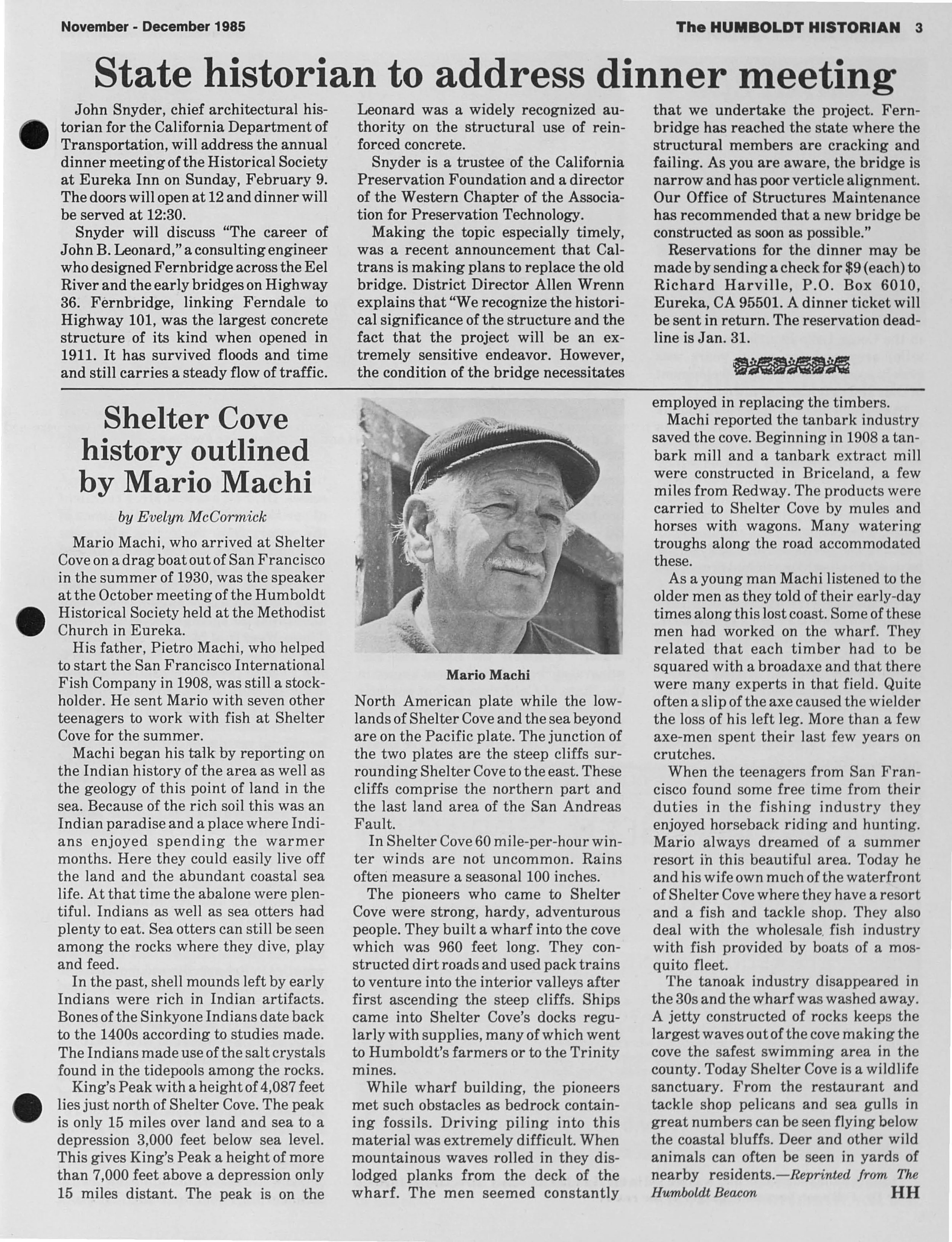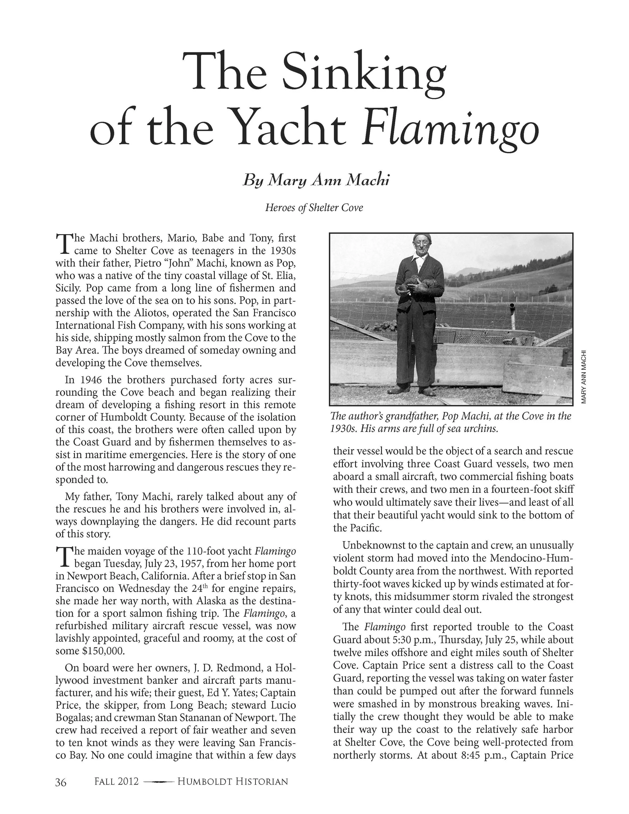 The Machi family and Shelter Cove have appeared in two previous articles in the Humboldt Historian. In particular, the 2012 article highlights Machi brothers and how they helped save passengers from a sinking ship during a storm.